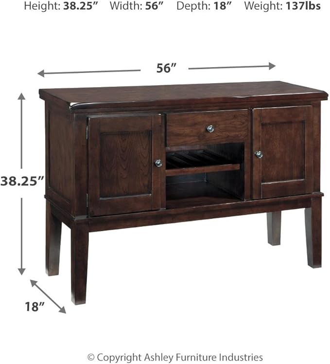 Signature Design by Ashley Haddigan Casual Traditional Dining Room Buffet Cabinet with Wine Rack, Adjustable Shelf, 1 Drawer, Wood, 54" Wide, Dark Brown