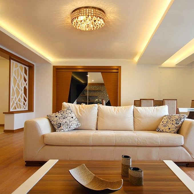 - 💡Accent addition for room decor: The flush mount lamp has a sturdy and sleek modern plate with clear texture and bronze finish which is made from sturdy metal as anti-corrosion and rustproof. There are 36 crystal strings for providing amazing glittering and translucent.Convenience installation is another feature of this fixture which has all necessary hardware, clear manual instruction, and video. Simple clear tassel raindrop crystal.