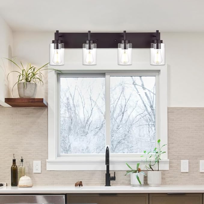 VINLUZ 4 Lights Bathroom Vanity Light Fixture Oil Rubbed Bronze Sconces Wall Lighting Industrial Indoor Wall Mounted Lamp, Farmhouse Style for Kitchen Dining Room (Patent No.: US D958,438 S)