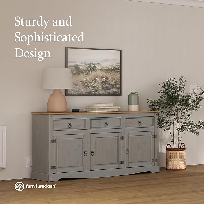 Furniture Dash Solid Wood Sideboard Buffet 65.9" W, 16.9" D, 31.6" H - Wooden Storage Cabinet, Cupboard Console Table, Ideal for Living Room, Kitchen Island, Dining Room