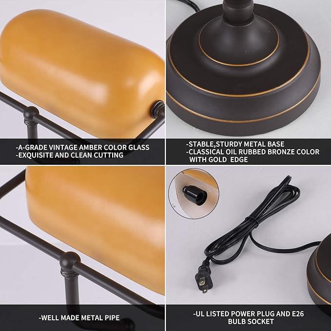 - ๐๐ป๐๐ถ๐พ๐๐ฒ ๐ง๐ถ๐บ๐ฒ๐น๐ฒ๐๐ ๐๐ฒ๐๐ถ๐ด๐ป: the banker's desk lamp featuring all metal construction with oil rubbed bronze finishing, topped by the A grade amber color glass shade, add a touch of retro style and nostalgic feeling with the traditional banker's style of this lamp, bringing a classic mid-century look to your interior furnishings