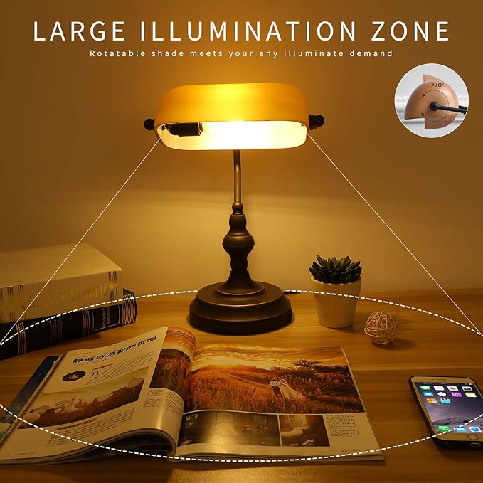 - ๐จ๐๐ฒ๐ณ๐๐น ๐จ๐ฆ๐ ๐ฃ๐ผ๐ฟ๐: the traditional desk bankers lamp with a practical USB fast charging port, adds more convenience to your life. can charge electronic device and within arm reach, which not only largely saving your time, but also saving you from wall plug cord messes. Charging function works whether the lamp is on or off