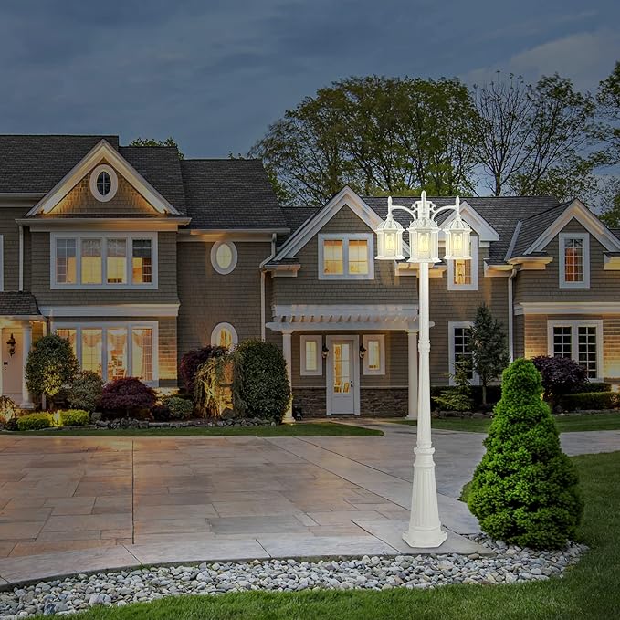 - 【Classic Lamp】With triple lantern head of birdcage shape design, it has dimensions of 1.8 x 6.5 feet (W x H). This three-light lamp post creates a welcoming light for guests, friends and family.