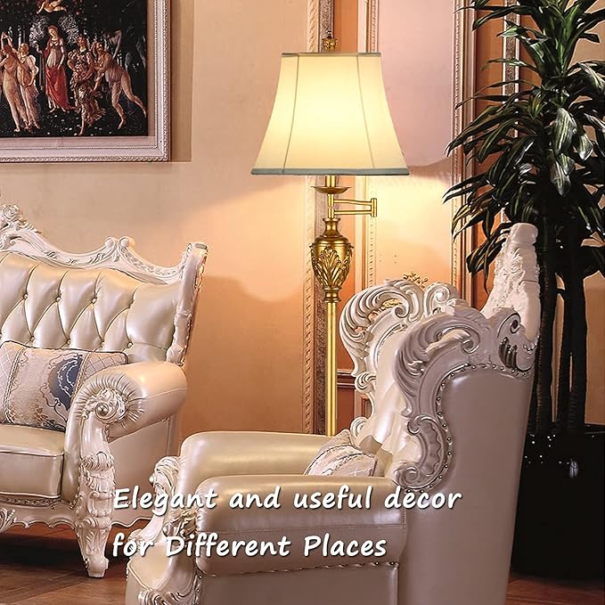 - PORTABLE & 350° ADJUSTABLE SWING ARM – The gold floor light is 60.5 Inches Tall, which is the Ideal Height for Providing a Gentle Glow. It's simple to move the lamp to where it's required. Its extending arm enables you to change the length of the light(No third level dimming)