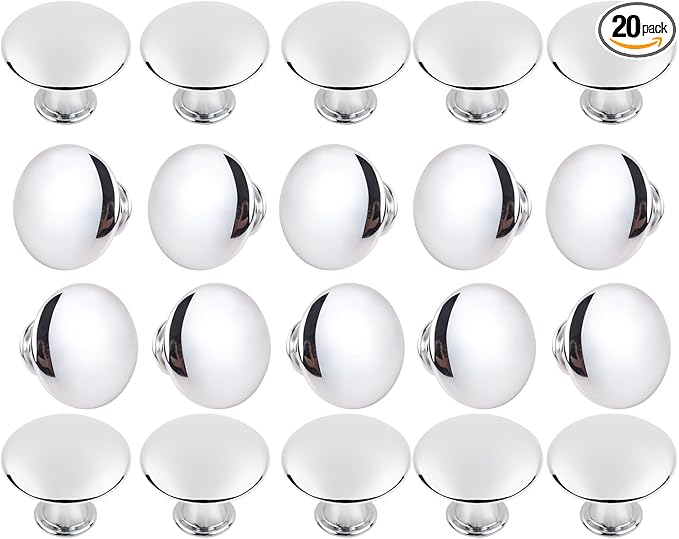 20 Pack Silver Round Antique Brass Kitchen Cabinet Knobs Cupboard Door Knobs Drawer Handle Pulls Dresser Knobs with 21 Pcs Screws for Bathroom Drawer Door Hardware