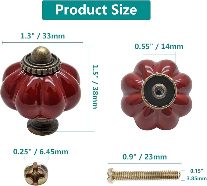 - *Worthwhile Investment --- 12 x Ceramic Pumpkin Knobs, which top diameter is 1.3" / 33mm, total height is 1.5" / 38mm. 12 x Mounting Screws, size is M4 x 25mm, that you can select the right size according to the thicknesses of the project, make DIY easier!