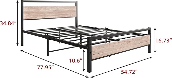 - 【Ideal Size and Enough Weight】Full bed frame size: 77.95” x 54.72” x 34.84” (length x width x height), weight: 64.60 pounds. Mattress not included.