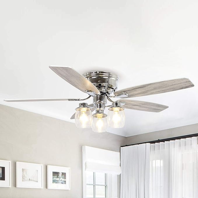 - FLUSH MOUNT CEILING FAN: Low profile ceiling fan and branched traditional light 2 in 1, equipped with powerful and whisper-quiet motor, requires 3* E26 base bulbs (Not Included). Perfect for rooms with low ceilings, such as living rooms, bedrooms, dining rooms.