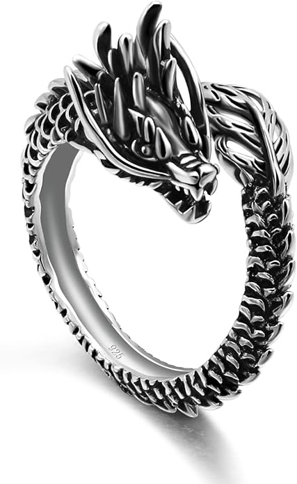 - Vintage Style - This Sterling silver Fashion Dragon Animal Ring make you look cool, masculine and accentuate your alluring charm. If you are punk or retro Gothic style rings lover, you're gonna love this ring ! adds a touch of glamour to your everyday look. The Dragon Ring Shape is not too thick, only the proper volume, It is the perfect Rings for everyday wear, whether it's casual jeans and a T-shirt or Suit. For fashion fashion declarations, wear and overlay and stratify with other pieces.