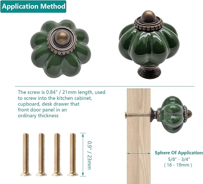 - *Worthwhile Investment --- 4 x Ceramic Pumpkin Knobs, which top diameter is 1.3” / 33mm, total height is 1.5" / 38mm. 4 x Mounting Screws, size is M4 x 25mm, that you can select the right size according to the thicknesses of the project, make DIY easier!