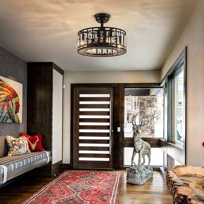 - 【Industrial Ceiling Fan with Light】: Unique to say the least, the composition of our crystal chandelier ceiling fan is quite striking, combining modernity and elegance in one. The exterior crystal cage brings a stylish theme while protecting the light bulb and the central fan blade. It's perfect for a loft or office space, hang in your eating area and enjoy the cool breeze.