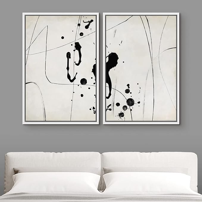 MUDECOR Framed Canvas Print Wall Art Set Grunge Ink Blot Paint Splatter Collage Abstract Shapes Illustrations Modern Art Decorative Bohemian for Living Room, Bedroom, Office - 16"x24"x2 White