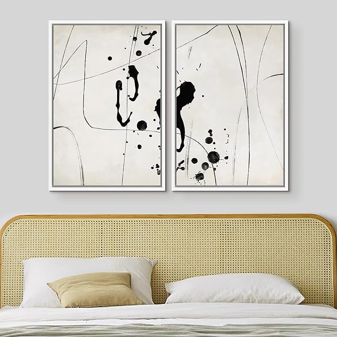 MUDECOR Framed Canvas Print Wall Art Set Grunge Ink Blot Paint Splatter Collage Abstract Shapes Illustrations Modern Art Decorative Bohemian for Living Room, Bedroom, Office - 24"x36"x2 White