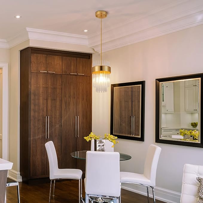 - Contemporary Stylish Style: This brass finish pendant light combines modern and mid-century,gold metal and crystal glass rods combination to stylish cake shape,breaks the visual balance of the space and creates a high-level decorative interest.