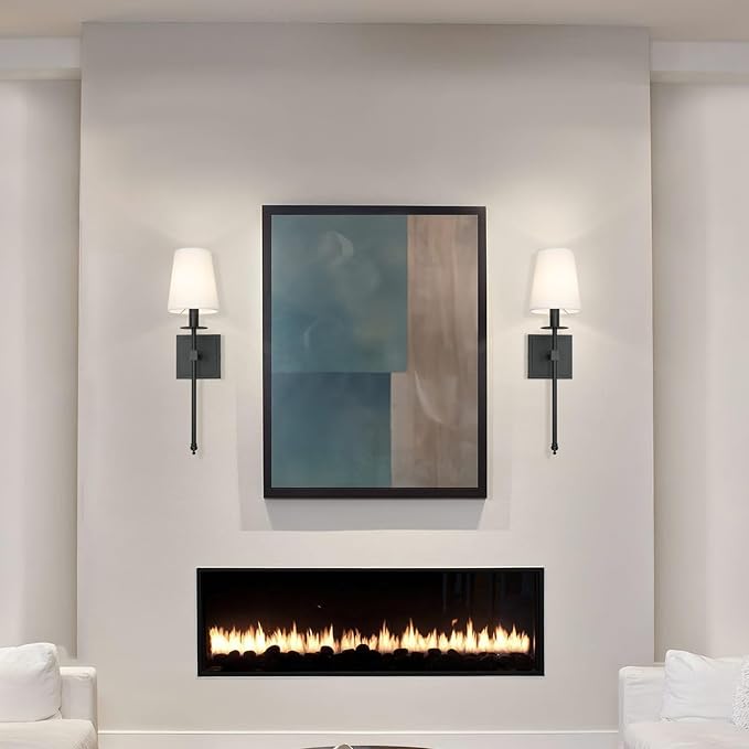 - CLASSIC DESIGN: Black Wall Sconces balances clean industrial lines with traditional charm to create a beautifully balanced lighting source. The elegant black arm can support a range of classic and modern fabric shade that emits soft light, creating a warm atmosphere for your room. Black sconces Wall Lighting can be used in various indoor occasions to decorate your home.