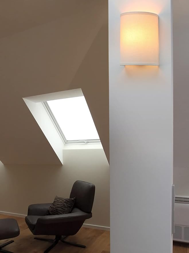 Wall Sconce Lighting White Fabric Decor, Industrial Vintage Night Light Wall Lamp Fixture with Cloth Lampshade for Bedroom Living Room Hallway Corridor