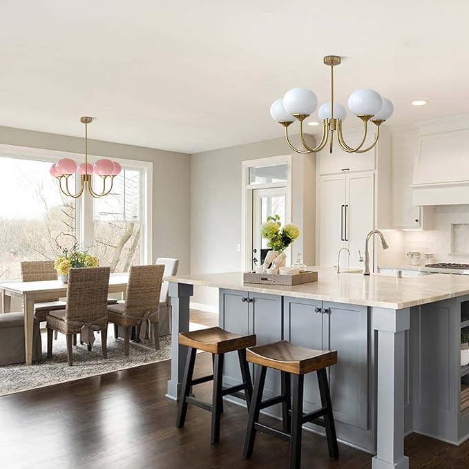 - 【Bulb Suggestion】The nordic glass globe chandelier need E26 X 5 light bulbs (Bulbs Not Include). Compatible with all E26 types of light bulbs, it is recommended to use LED light sources to bring enough light to illuminate the entire space.
