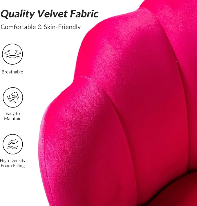 HULALA HOME Modern Velvet Accent Chair with Shell Shaped Back, Cute Living Room Bedroom Armchair with Gold Legs, Comfy Upholstered Vanity Chair for Makeup Room, Fushia