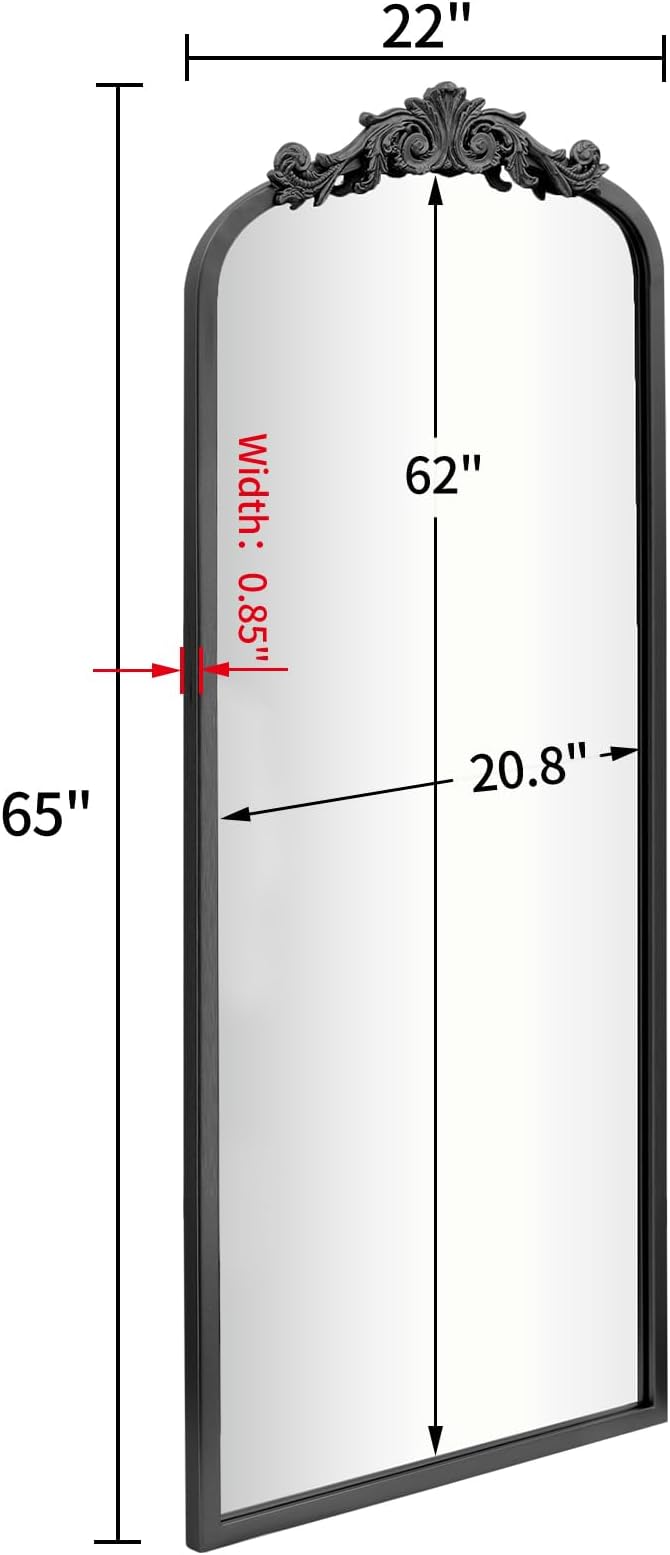 - 【HIGH QUALITY WALL MIRROR】The 22 x 65 inch vintage mirror frame is made of high quality metal, cast iron vintage engraved patterns, hand polished to make the vintage arched large wall mirror smooth and flat. The metal frame not only adds to the aesthetics, but is also strong, rust-resistant, and resists warping, making the arched wall mirror surface less prone to damage.