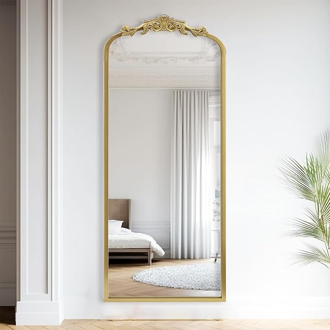 - 【HIGH QUALITY WALL MIRROR】The 22 x 65 inch vintage mirror frame is made of high quality metal, cast iron vintage engraved patterns, hand polished to make the vintage arched large wall mirror smooth and flat. The metal frame not only adds to the aesthetics, but is also strong, rust-resistant, and resists warping, making the arched wall mirror surface less prone to damage.