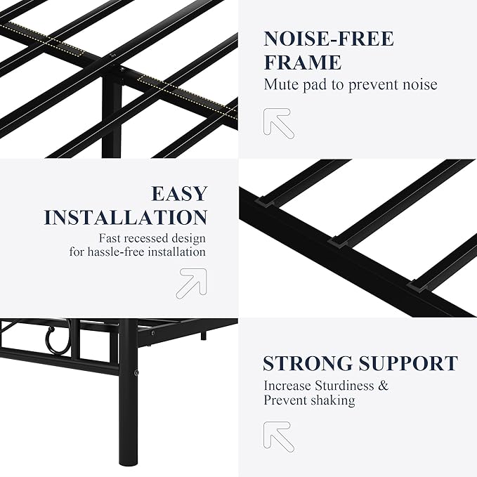 - AMPLE UNDERBED STORAGE: Metal slats extend the life of the mattress, and don't need to buy box springs. The high bed foot(13.4 in) design frees up more space under the bed, which is good for us to store other items