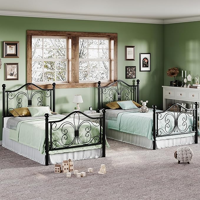 Allewie Twin Size Bed Frame for Kids,Metal Bed Frame with Butterfly Pattern Design Headboard and Footboard,No Box Spring Needed,Easy Assembly,Black