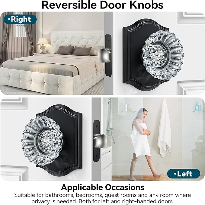 - 【Easy Installation】 Only need a screwdriver, you can easily install the glass crystal door knobs interior according to the instructions included in the package. Black crystal interior door knobs fit pre-existing holes greatly, work with both replacement and new door.