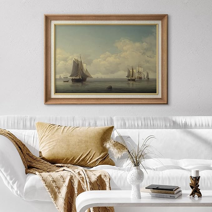 SIGNFORD Premium Framed Wall Art Classic Sailing Ships at Sea Nature Wilderness Illustrations Fine Art Farmhouse/Country Decorative Rustic Vintage Antique Classic for Bedroom - 26"x36" Natural
