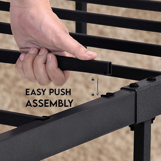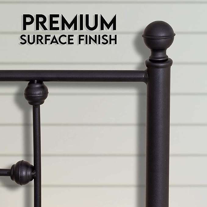 - DURABLE METAL CONSTRUCTION: Crafted with a sturdy wrought steel, this bed frame provides a stable mattress foundation with extra metal rods. Its strong iron build resists sagging, boosts structural strength, and delivers consistent use over time.