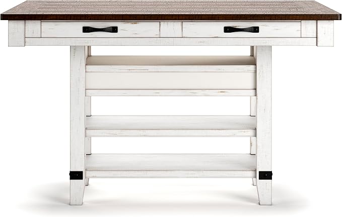 Signature Design by Ashley Valebeck Rectangular Dining Room Table, 4 Drawers, 2 Open Shelves, Wine Rack, Wood, 60" W x 40" D x 36.13" H, White & Brown