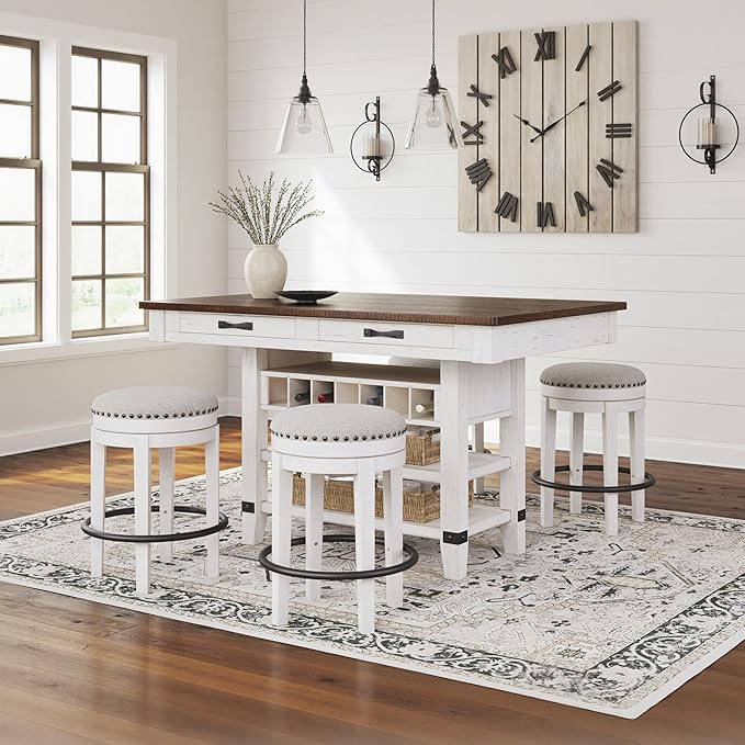 - COUNTER HEIGHT DINING TABLE: A high-style choice for dining spaces, this casual dining table serves up the best in rustic farmhouse living