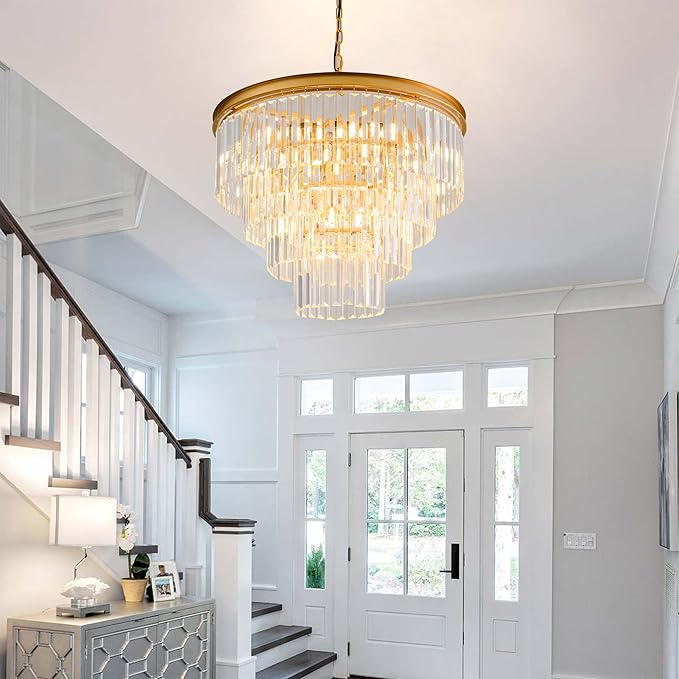10-Light Gold Crystal Chandelier 4-Tier Luxury Pendant Lights 22.8" K9 Crystal Hanging Ceiling Light Fixture for Hallway Dining Room Living Room Bedroom Kitchen Island Stairway