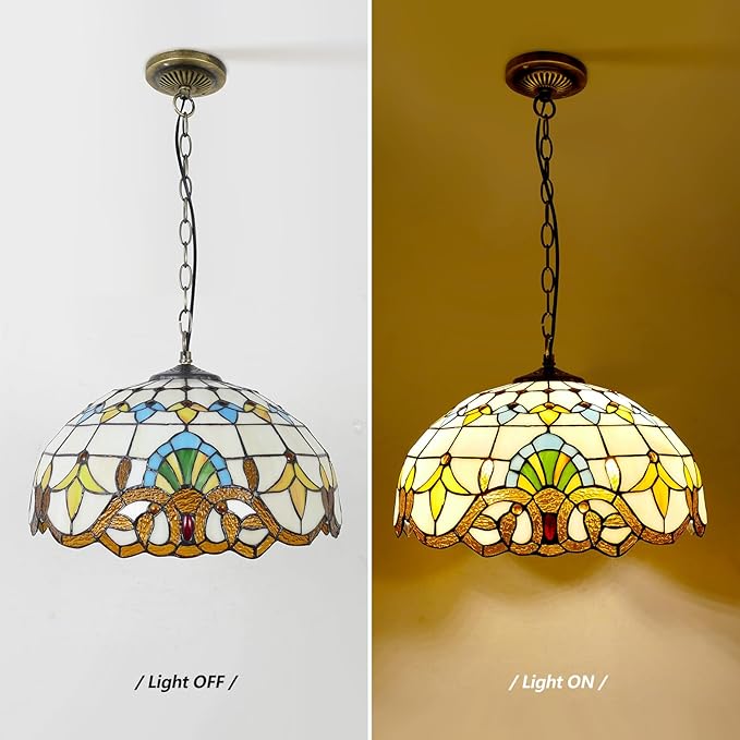 - Tiffany Chandelier Dimension: The victorian style pendant light for living room dimension is 15.74" x 15.74" x 69.29"(L x W x H). The hanging chain is 59 inches long and is adjustable. Includes all mounting hardware and instructions for quick and easy installation.