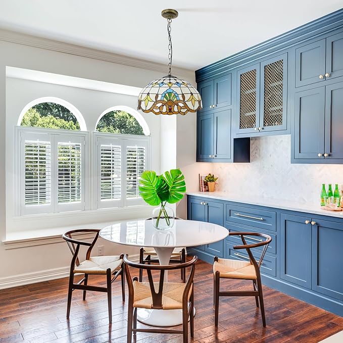 - Handmade Stained Glass Lampshade:iffany pendant light for kitchen island made up of handmade stained glass lampshade and metal. The hanging light with stained glass lampshade is not only a lamp but also an art, It is an art collection that will Increase Your Home Decoration.