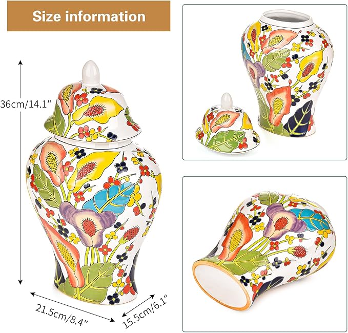 - Exquisite Design: The ceramic vase is thick and well made with colorful design, features hand painted flower pattern and enamel glaze. The jar mouth is smooth and delicate, bottom is finely polished.
