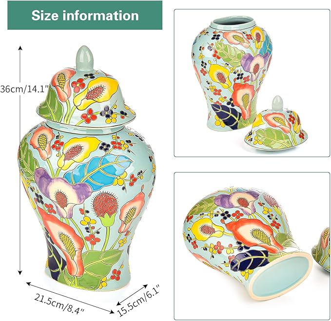 - Multi-functional: Beautiful glazed ceramic oriental jars with removable lids, it can be used as a storage jar, also as a vase for displaying artificial flowers and dry branches.