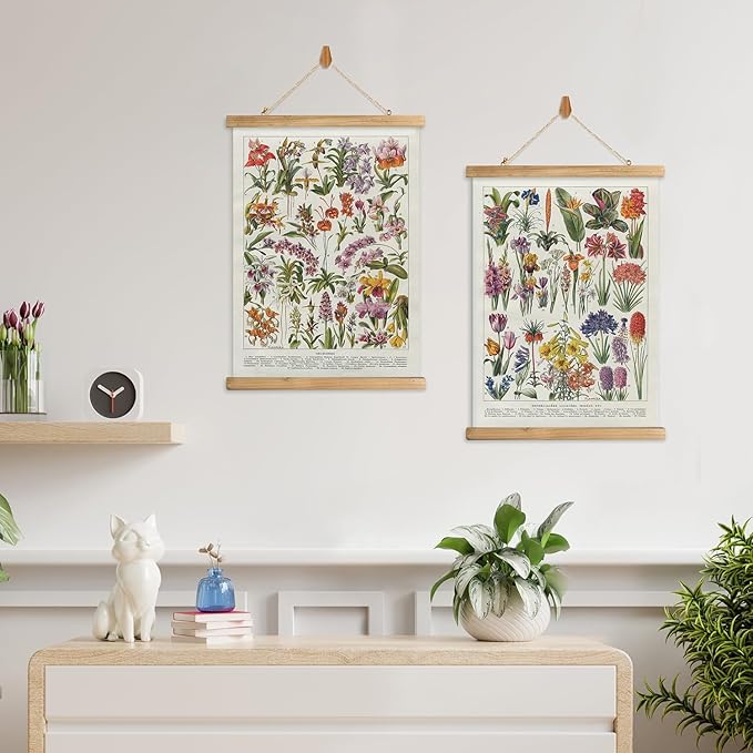 - Classic Wooden Hanger Frames: These prints come with elegant wooden frames, adding a rustic touch to the botanical artwork and providing ease of hanging.