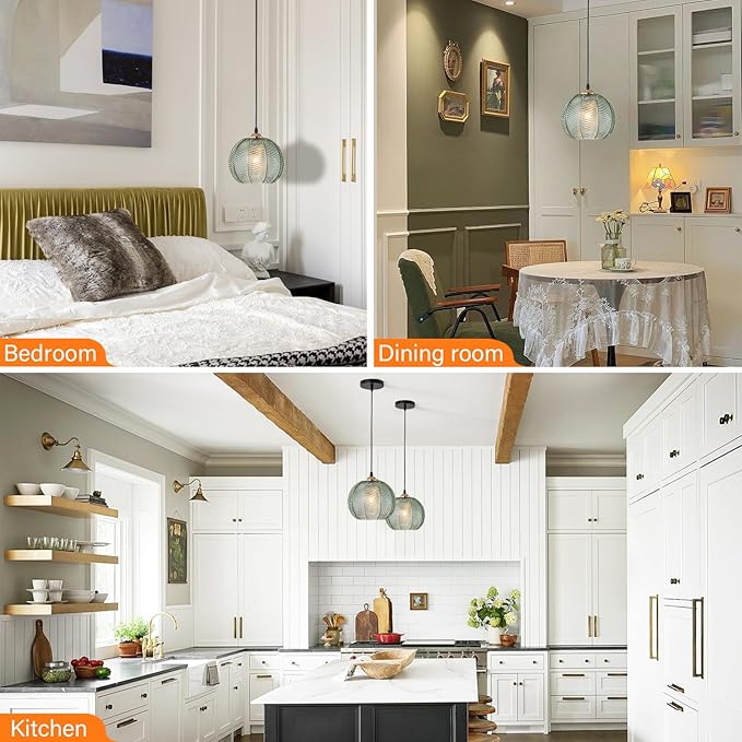 - 【Thick Hand Blown Glass Shade】Unlike flimsy competitors, our kitchen hanging lights features heavy-duty green glass with artisanal textures. When lit, it casts mesmerizing patterns—perfect for creating a cozy or dramatic ambiance in living rooms or entryways.
