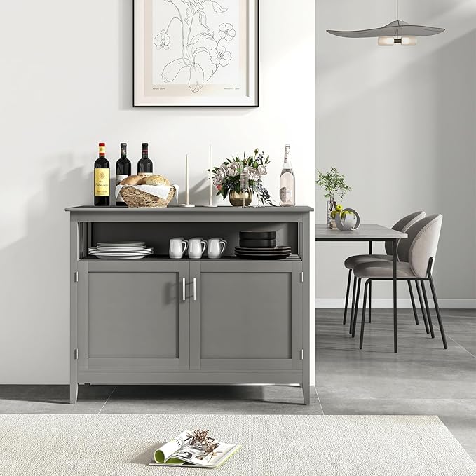 LOKO Buffet Cabinet with Storage, Freestanding Kitchen Cabinet with Adjustable Shelf, Storage Sideboard Console Table, 45 x 20 x 36 inches (Grey)