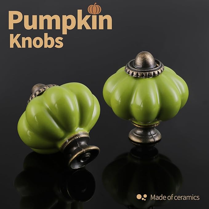 - *Purchase Guiding* 2 x Sage Green Ceramic Pumpkin Knobs with mounting set. Knob size: 1-3/8" x 1-1/2"(Dia.* L). Mounting hole depth is 0.2" / 5mm. 2 x Regular Screws 1" / 25mm.