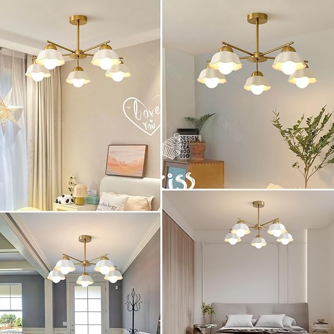 - Modern 5-Light Sputnik Chandelier: The vintage milk glass chandelier comes quality metal and white flower shaped ceramic lampshade, it's full of modern texture and retro atmosphere. Perfect for your kitchen island, dining room, living room, bedroom, hallway, etc.