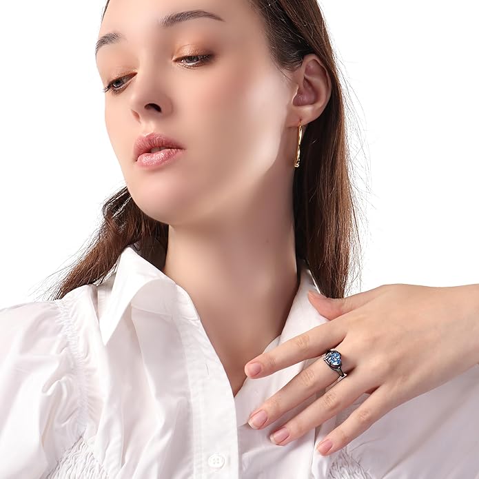 - 【AAA+ Heart Zircon Spotlight】 Centered with a vivid, blue AAA+ heart-shaped zircon, evoking the blue topaz rings and the December birthstone ring. A captivating symbol of love, making a bold statement.