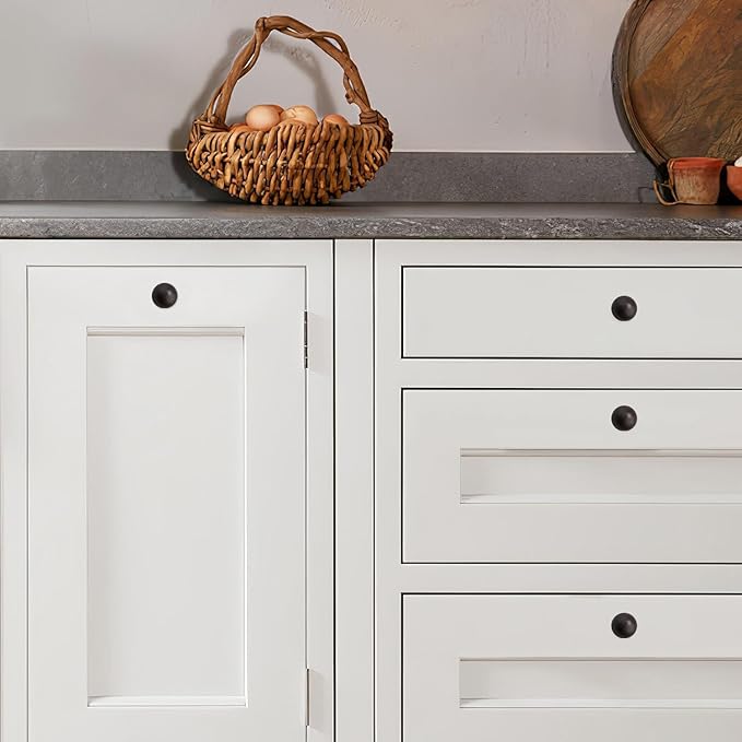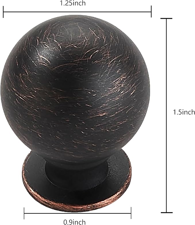 khtmeware 2 Pack 1-1/4 Inch Soild Oil Rubbed Bronze Cabinet Knobs Bi-Fold Door Knobs Large Heavy Duty Ball Kitchen Cabinet Hardware Drawer Knobs Pulls for Drawers.