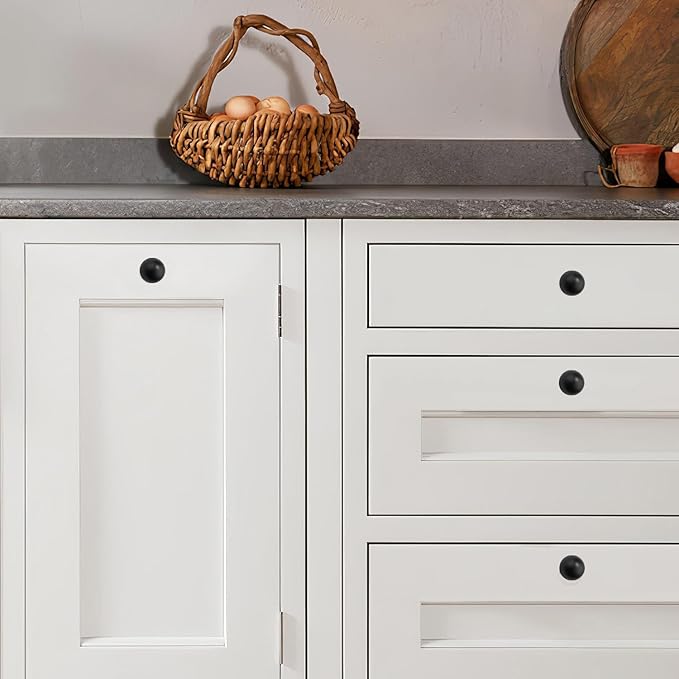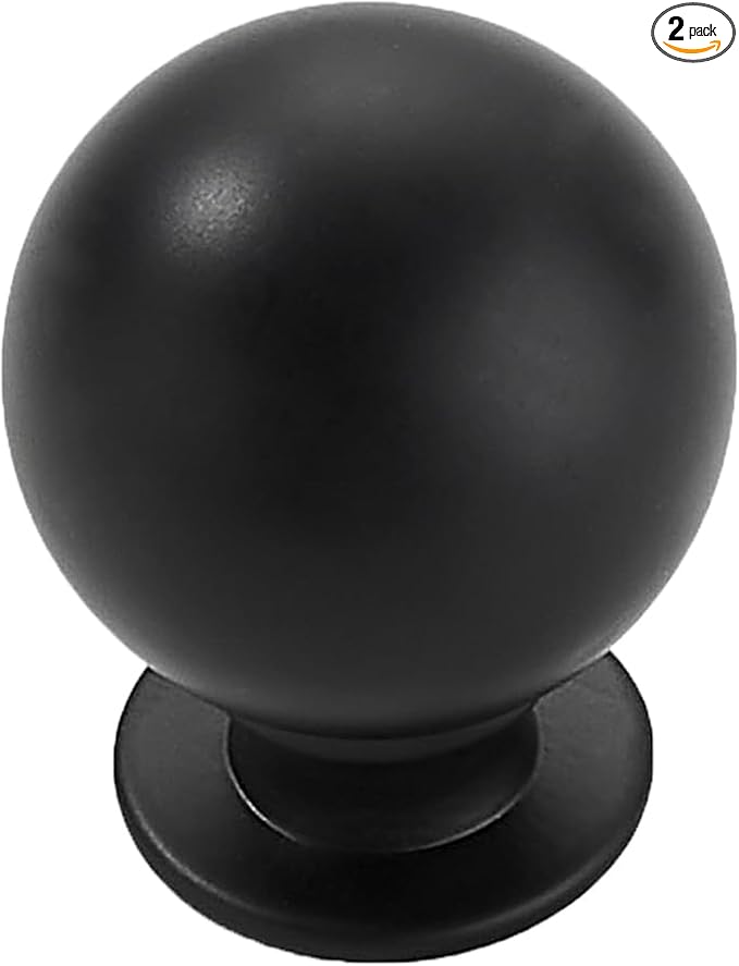 khtmeware 2 Pack 1-1/4 Inch Soild Matte Black Cabinet Knobs Bi-Fold Door Knobs Large Heavy Duty Ball Kitchen Cabinet Hardware Drawer Knobs Pulls for Drawers.