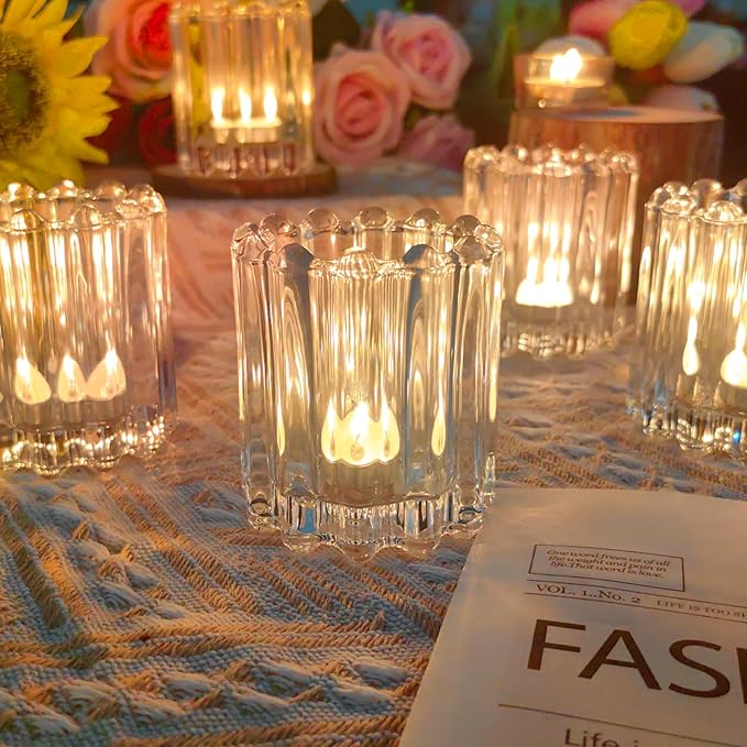 - THICK & HARMLESS GLEAR GLASS: Constructed from thick, lead-free, and harmless glass, these candle holders are incredibly sturdy and resistant to breakage. Their exceptional transparency allows for a stunning diamond-like effect, creating beautiful and soothing illumination throughout the night.