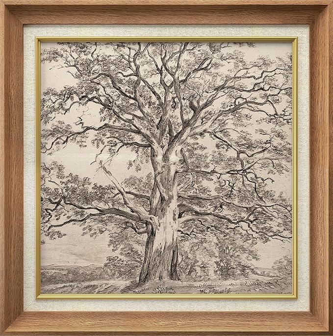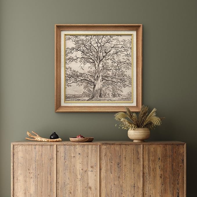 MUDECOR Premium Framed Wall Art Forest Tree Sketches Sepia Duotone Wilderness Nature Vintage Illustrations Fine Art Decorative Retro Historic Zen for Living Room, Bedroom, Office - 26"x26" Natural