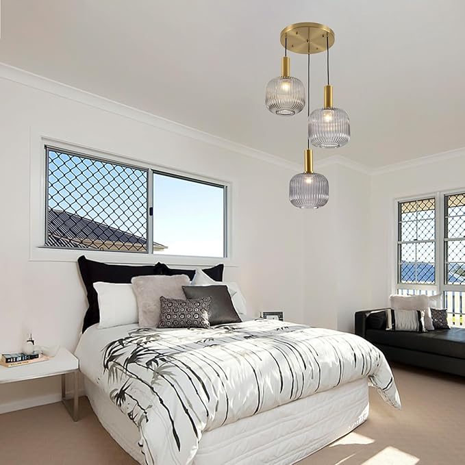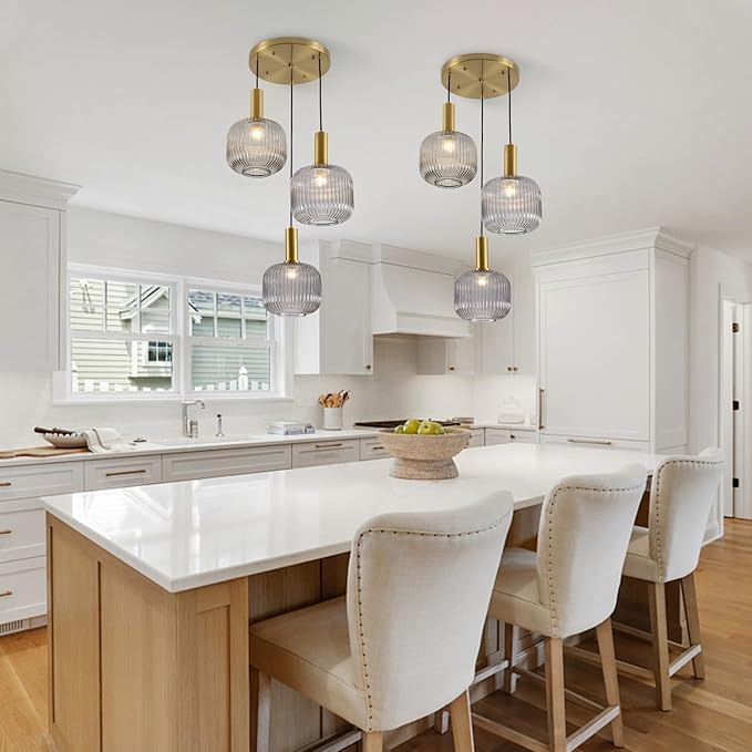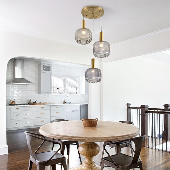 - 【3-Light Glass Globe Design】The 3 x 20cm Vintage Kitchen Gray Glass Pendant Lights is made of the unique striped glass lampshade. When light passes through the striped glass lampshade it emits beautiful light, casting an irresistible charm that enhances the ambiance of the space.