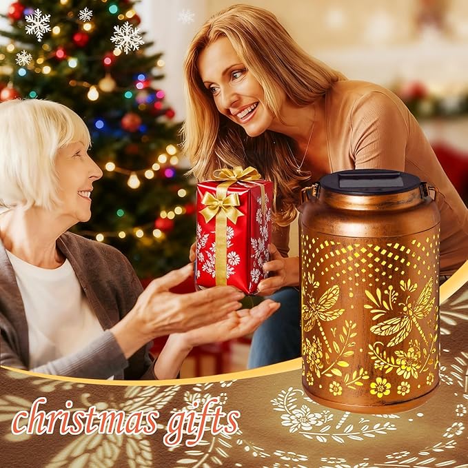 - Dragonfly Decorative Design: Vintage look, golden copper colour, hollow metal finish, solar powered outdoor lantern emits bright and warm light in the dimness with gorgeous and beautiful Dragonfly pattern, creating a beautiful atmosphere for the surroundings.