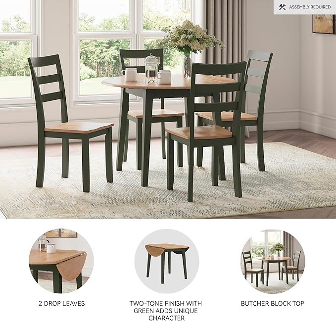 - DROP-LEAF DINING TABLE: Complement your home’s relaxed sensibility with this table. A green hue offers a chic contrast to the natural wood tone. Converts to a larger table with the 2 drop leaves