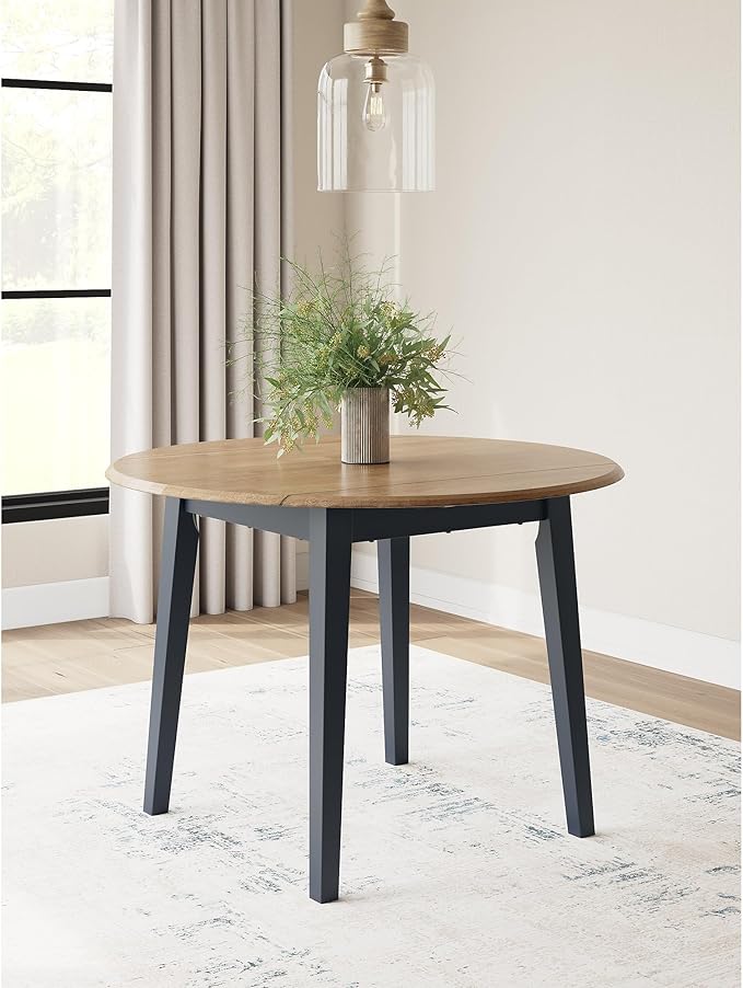 Signature Design by Ashley Gesthaven Modern Dining Drop Leaf Table with 4 Legs, Light Brown & Blue